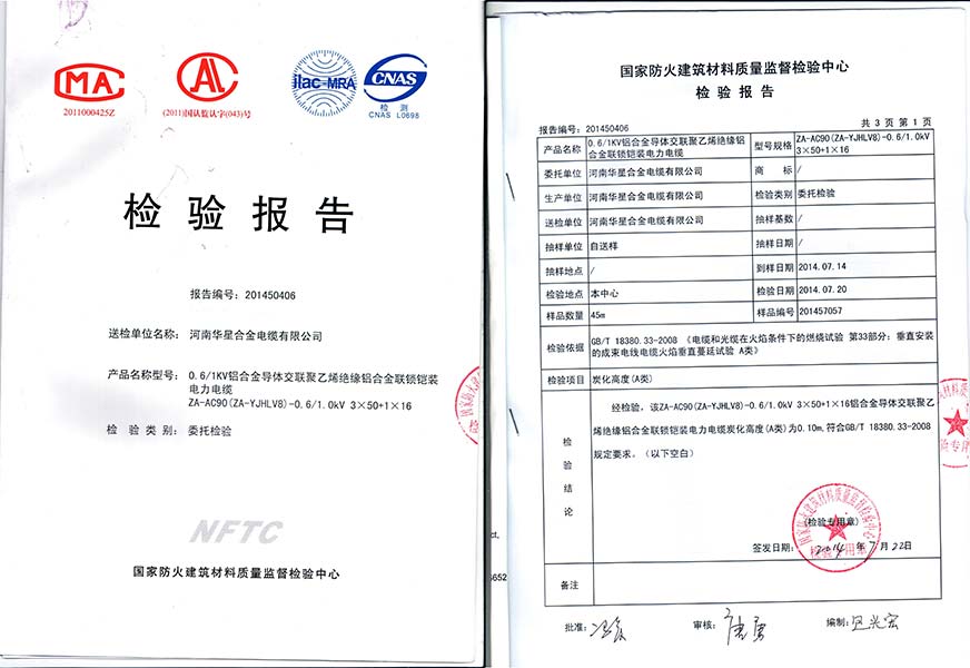 華星合金電纜專注于高科技合金導體、合金電纜的研發與生產,是國內領先的鋁合金導體研發與冶煉企業,為國內合金導體材料(AA8030)主要生產及供應商,公司生產全系列鋁合金電纜:ZC-TC90(YJHLV)、ZB-ACWU90(YJHLV82)、ZA-AC90(YJHLV8 )、YJHLV22、JKXHLYJ、BXHLV、XHLHL600、NH-YJHLV、WDZN-YJHLV,均通過最權威的"國家電線電纜質量監督檢測中心"的檢測合格。